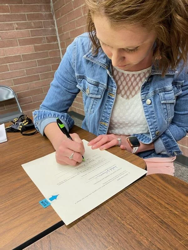Hayes Center Board Member Nikki Hamilton signs the Hayes Center, Nebraska Sanctuary City for the Unborn Ordinance Outlawing Abortion. Photo by Kim Primavera.
